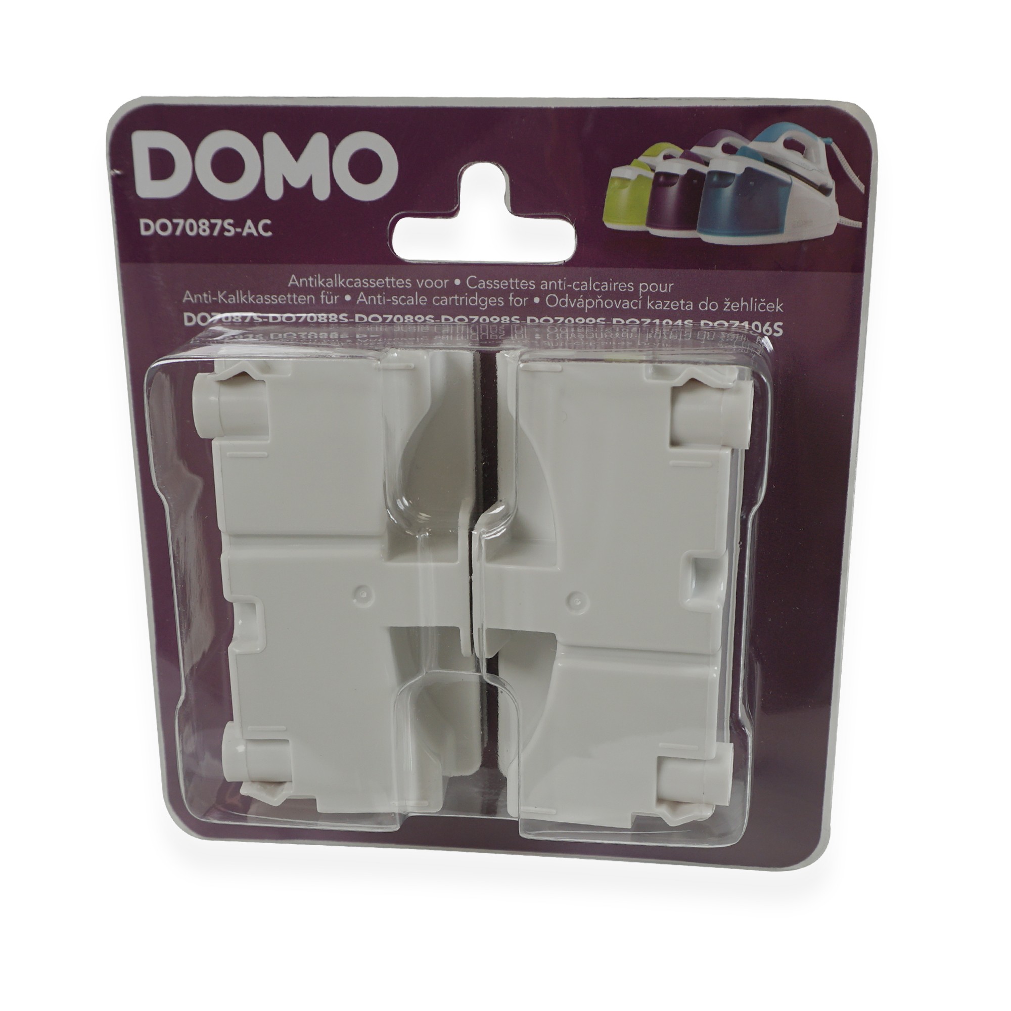 Protégez votre centrale vapeur DOMO contre les dépôts de calcaire avec ce lot de 2 cassettes anti-calcaire.